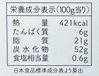●栄養成分表示(製品1個(15g)あたり):熱量74.00kcal、たんぱく質0.70g、脂質4.50g、炭水化物8.10g、食塩相当量0.05g